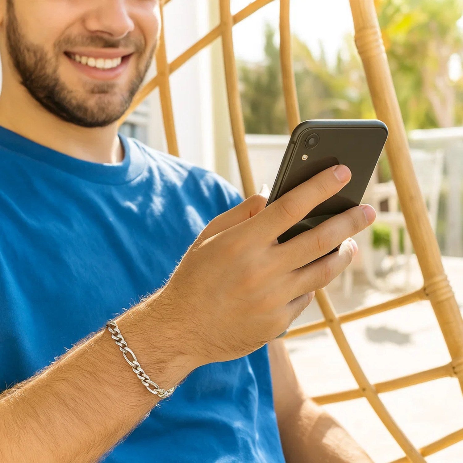14k White Gold Solid Figaro Bracelet (6.00 mm)
